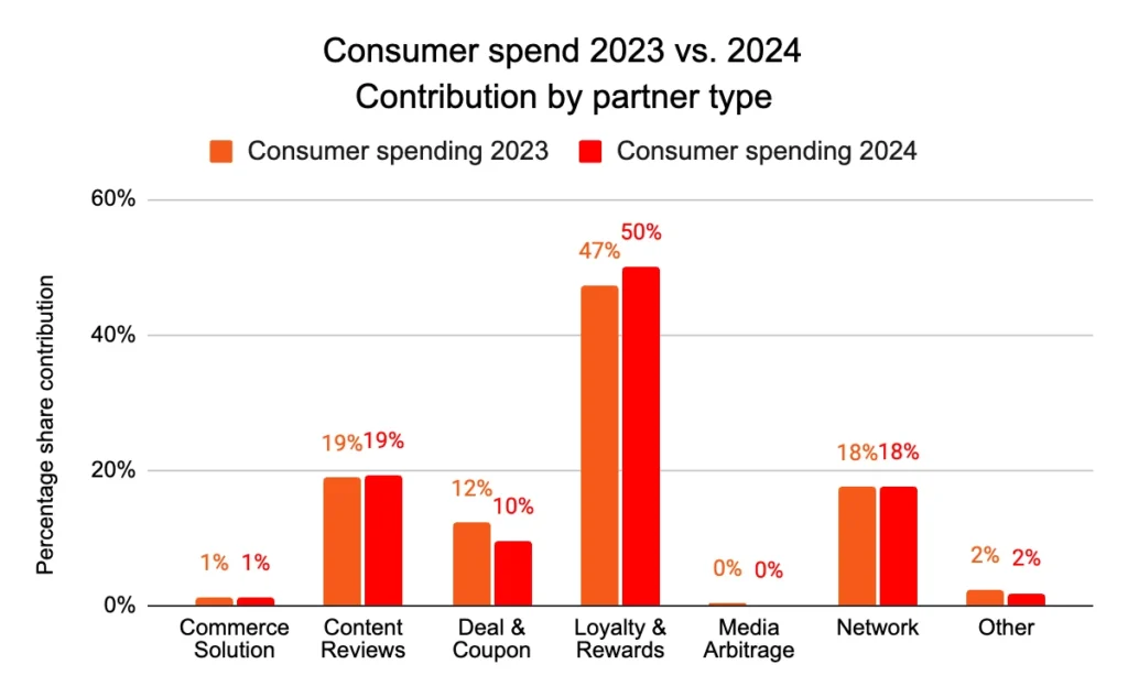 Our research shows that half of consumer spending in 2024 was attributed to loyalty and rewards partners, ticking up from 47% last year.