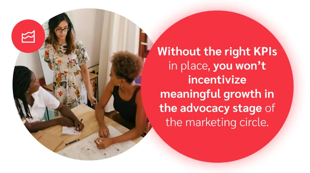 Expand the traditional loyalty metrics you’ve been focusing on—beyond repeat sales to include engagement and advocacy. Without the right KPIs in place, you won’t incentivize your team to drive meaningful growth in this stage of the marketing circle.