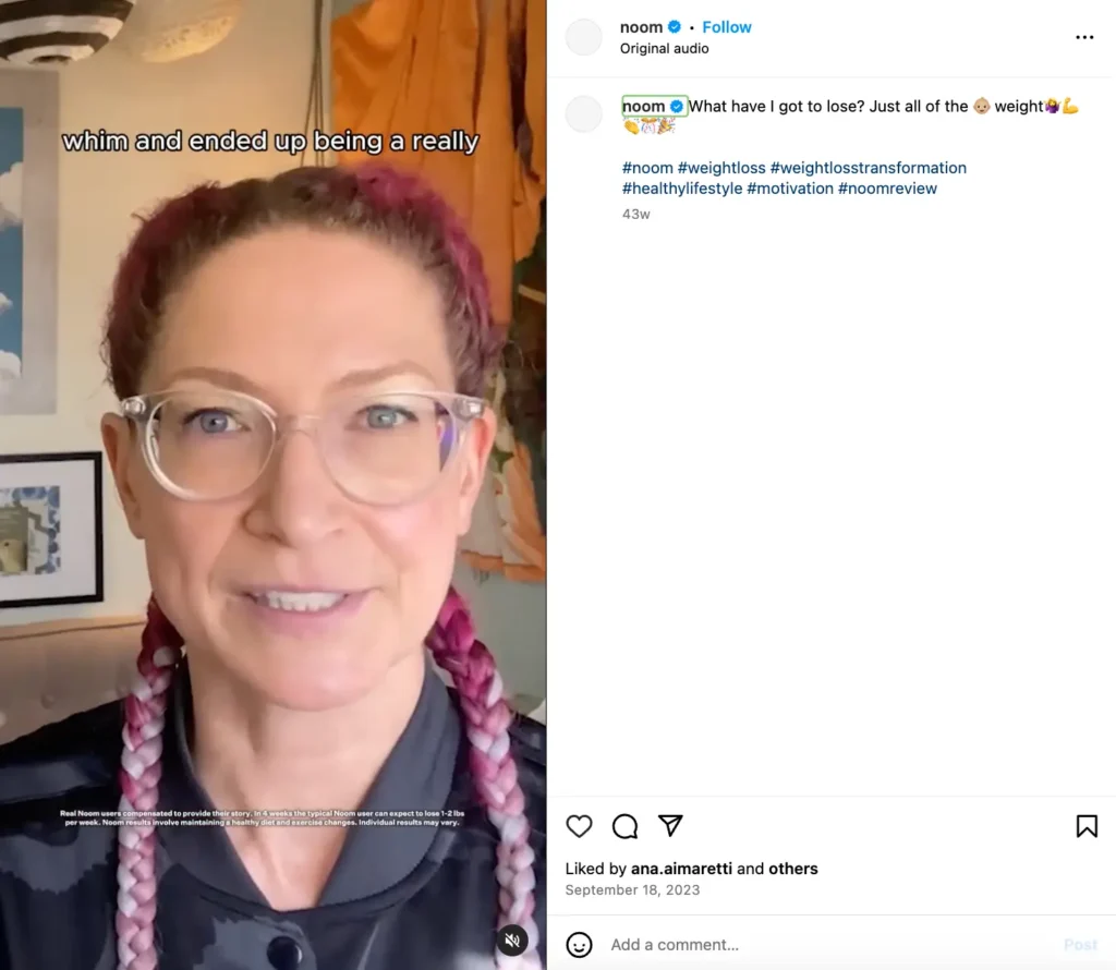 They created Noom Circles, an app feature that allows users to share their progress, give advice, and connect based on shared interests. They also regularly feature real customers on their social media pages to build a social community and motivate other members.
