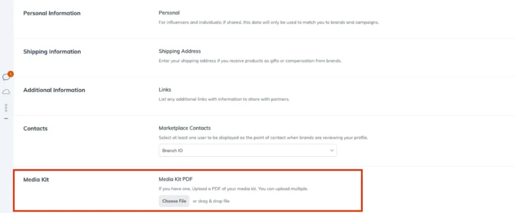 Finally, you can upload your complete media kit to the Media Kit section. This allows brands to learn more about your audience, content, and services.