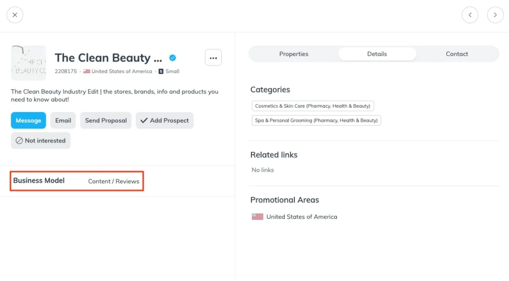The Clean Beauty Industry Edit identified as a Content/Reviews publisher, letting potential brand partners know how they operate and can benefit brands.