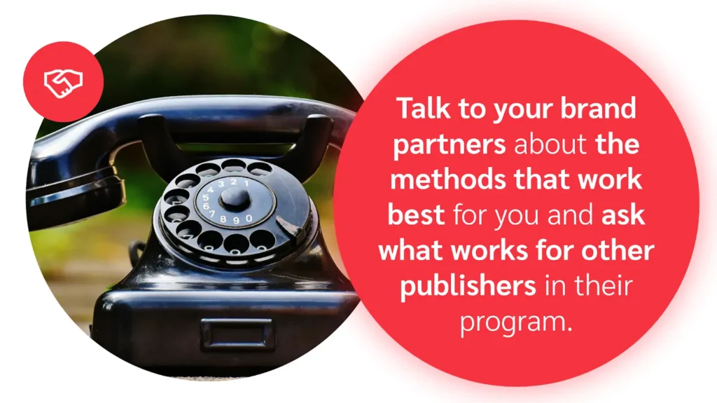 - Stay in touch. Talk to your brand partners about the methods that work best for you and ask what works for other publishers in their program. When it comes time to renegotiate your affiliate contract, leverage hard data to make your case and prove your value.