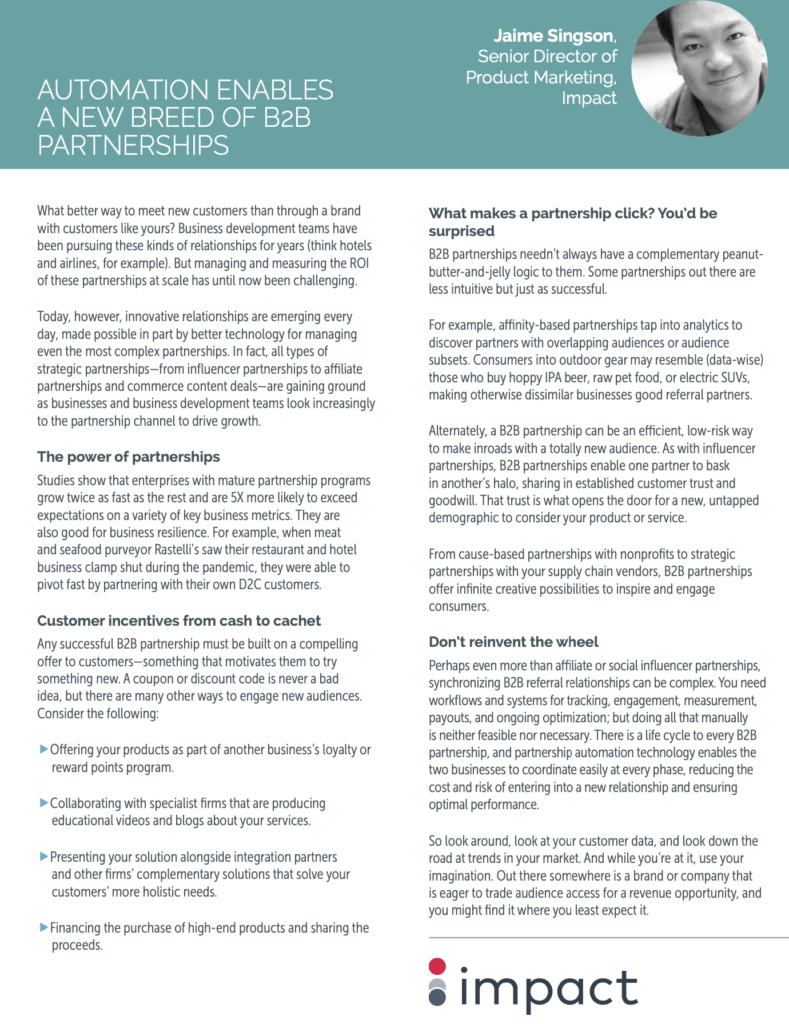 Want to explore B2B partnerships more? Contact an Impact growth technologist at grow@discoverimpact.wpenginepowered.com.