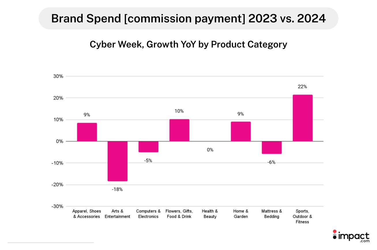 Due to higher commission rates, Sports, Outdoor, and Fitness brands paid 22% more in commissions than last year.