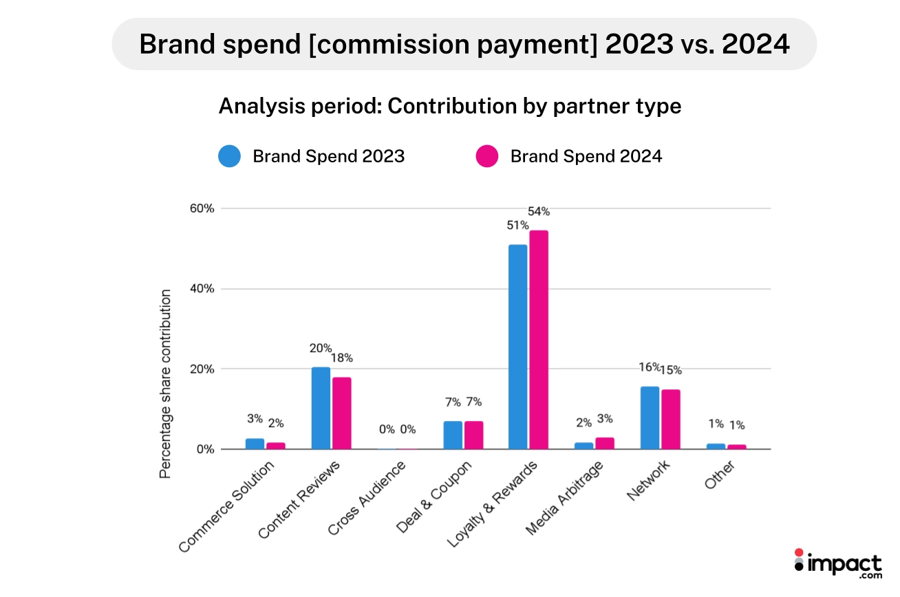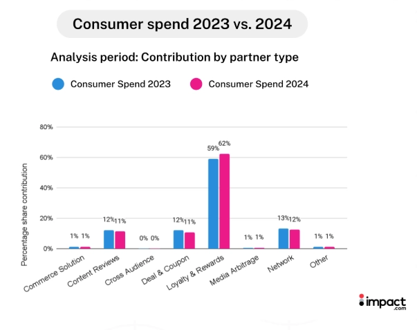 While Loyalty and Rewards partners continue to be lucrative, it’s still essential for brands to invest with other partner types. Other affiliate partners likely play a role earlier in the customer journey and consistently contribute to overall consumer spend.