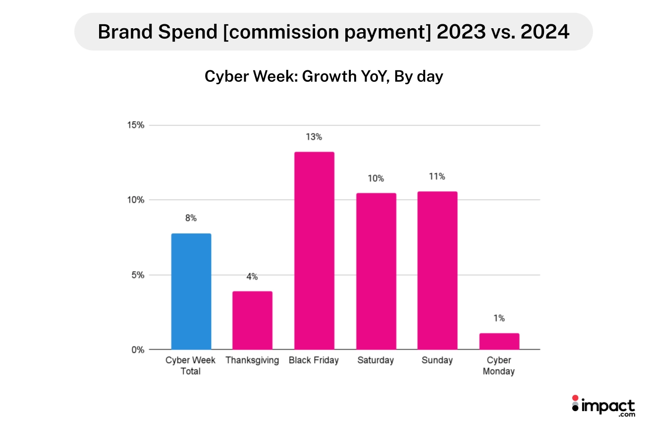 - Invest in high-performance partnerships: Commission payments rose 11% overall, with an 8% increase during Cyber Week, reflecting stronger partner performance.