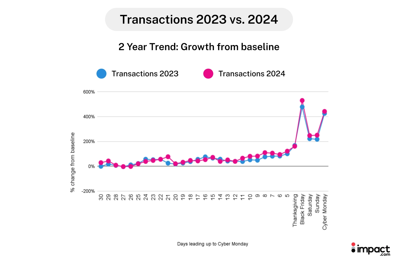 - Make the most of Black Friday momentum: Black Friday transactions exceeded Cyber Monday by 16% in 2024.