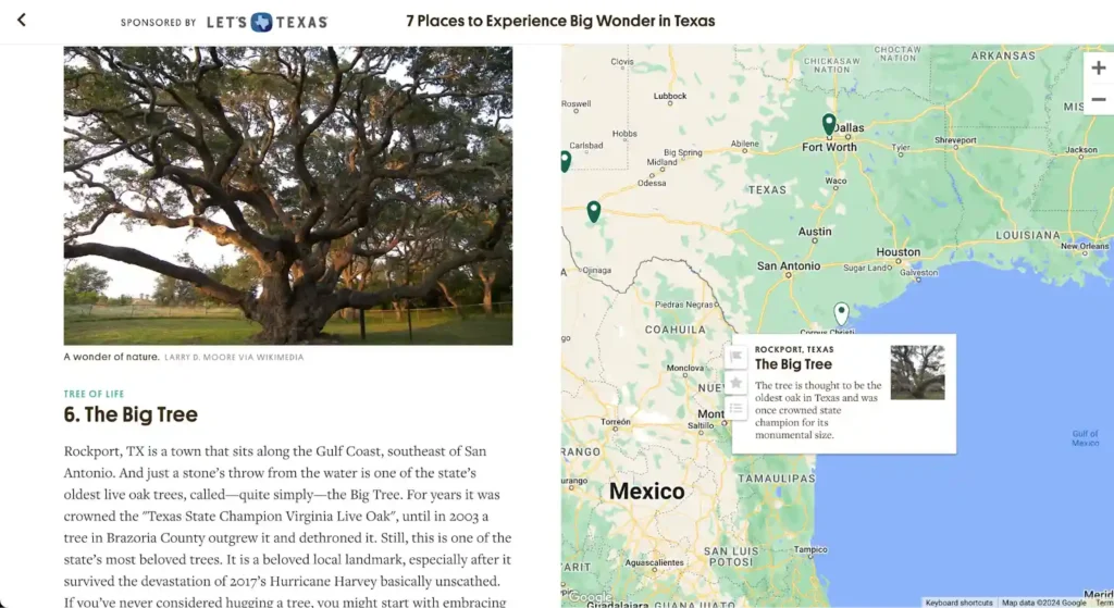The piece introduces readers to some of the state’s most awe-inspiring and off-the-beaten-path destinations. The interactive map format and informative text about each location provide value and keep the reader locked in.