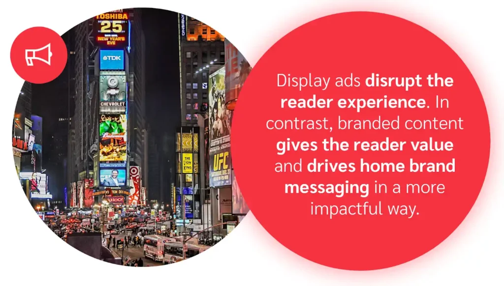 Historically, publications have received most of their revenue from display ads. But their impact—and demand from brands to buy them—has declined. These ads often disrupt the reader experience and don’t relate to the surrounding article. So, readers have learned to tune them out.