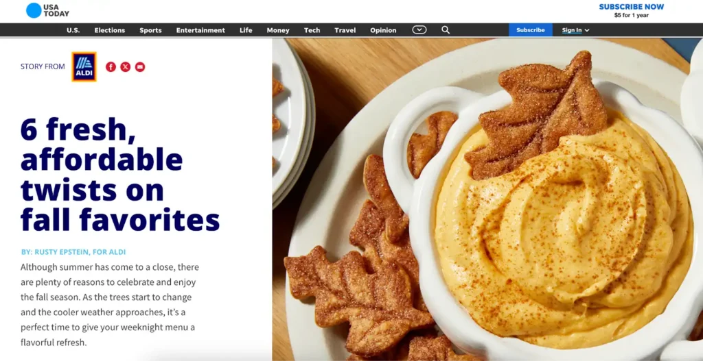 USA Today created a fun collection of fall recipes to showcase what readers could achieve with Aldi’s mouthwatering grocery offerings.