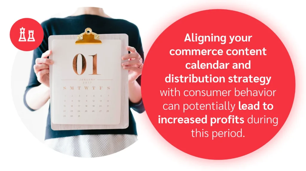 Aligning your commerce content calendar and distribution strategy with consumer behavior can potentially increase profits during this period.