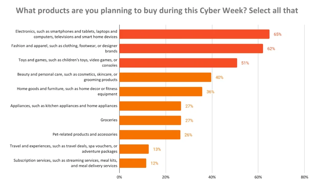 Cyber Week has evolved into a widespread online shopping event, with 78% of consumers reporting shopping online to some extent last year. However, they prefer hunting down deals on certain product types.