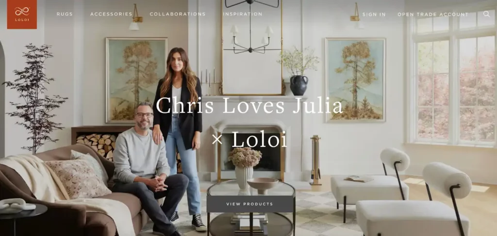 Interior design creator Chris Loves Julia partnered with Loloi to create a rug line that reflects the power couple’s signature warm and homey design.