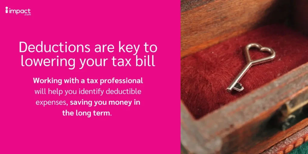A qualified accountant can advise you on how much tax to pay based on your income, business structure, location, and other key factors. They can also help you identify deductible expenses, saving you money in the long term.