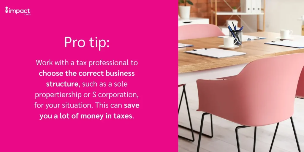 “Knowing the best business structure for your current income and situation can go a long way,” says Nicole. A tax professional can weigh in on the best structure for you and help you navigate other factors that can influence your rate, such as your state tax laws.