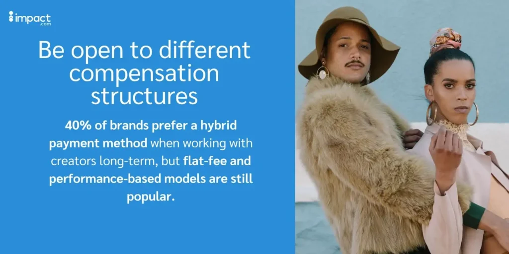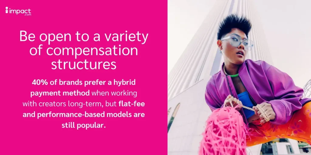 You can also opt for hybrid compensation, which allows brands to compensate you for your effort upfront, and then provide more rewards for your impact.