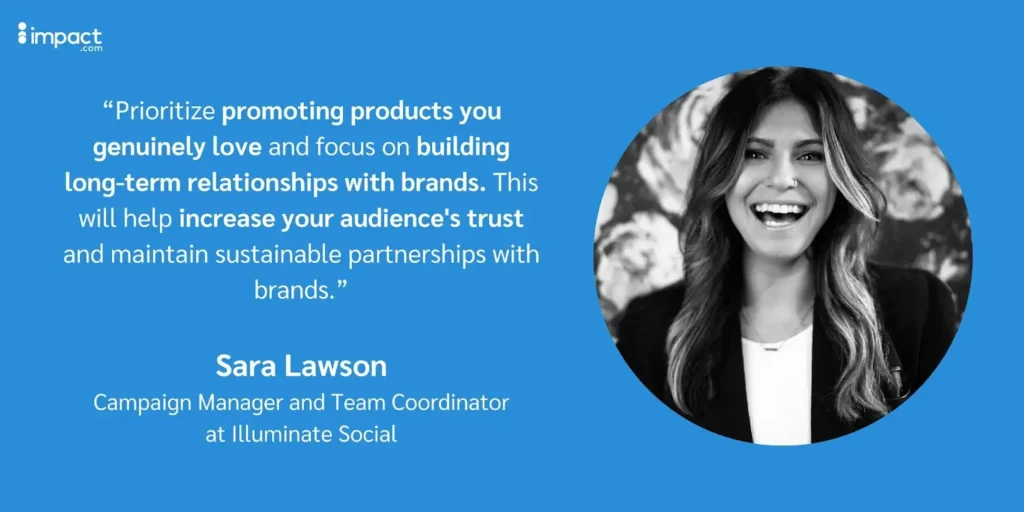 As you consistently promote the brands you love, you build brand affinity with your audience, leading to better engagement and ROI. “This will help increase [your] audience’s trust and maintain sustainable partnerships with brands,” adds Sara Lawson, Campaign Manager and Team Coordinator at Illuminate Social.