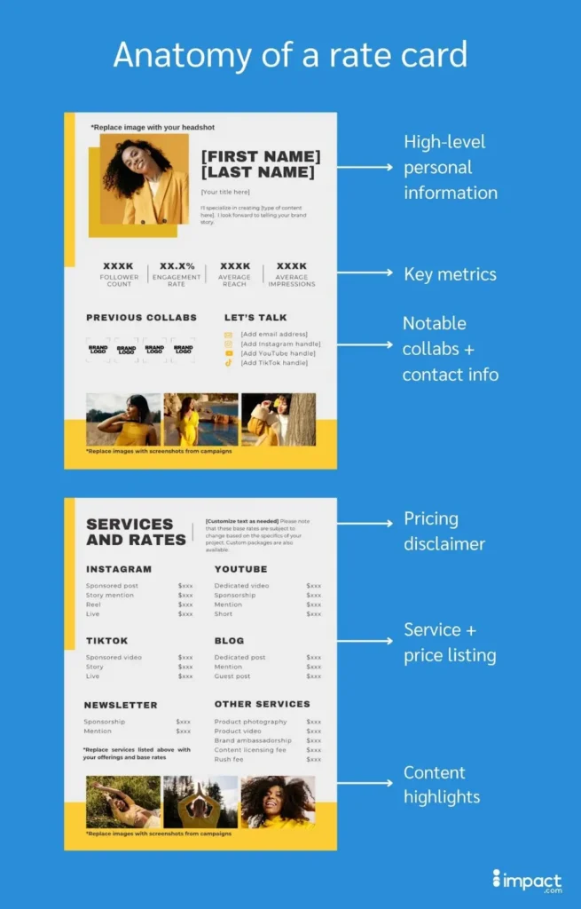 Instead, frame your rate card as a listing of base rates that can guide negotiations with the brand. No matter how great the opportunity, you don’t want to move too fast and sell yourself short.
