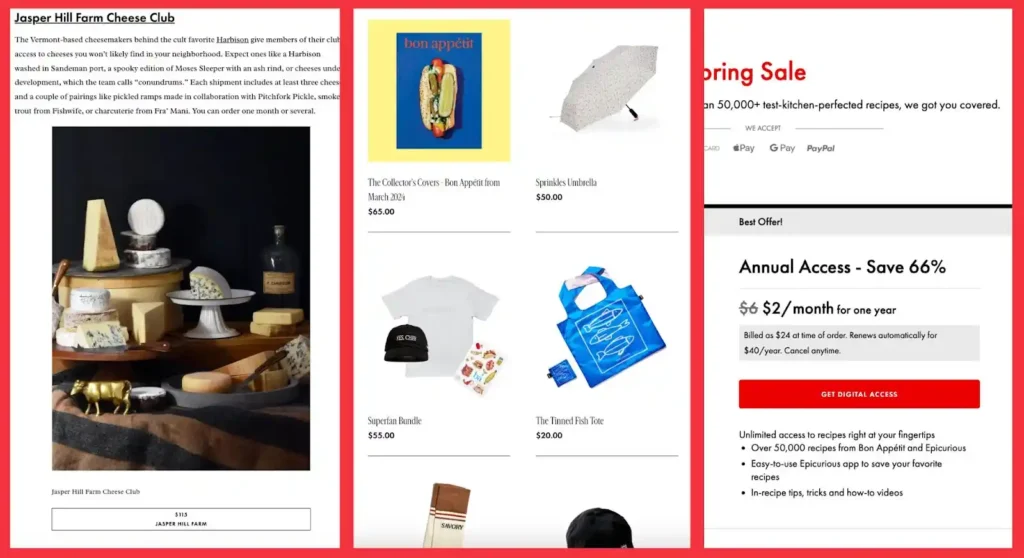 Bon Appétit has a variety of revenue channels, including affiliate partnerships, merchandise, and subscriptions.