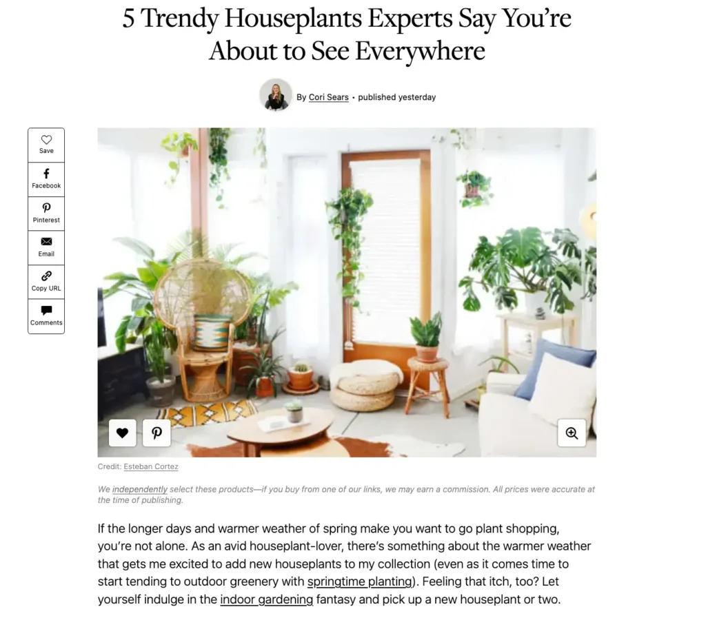 Apartment Therapy’s piece about popular houseplants has a per sonable tone that relates to plant-loving readers directly and fosters camaraderie.