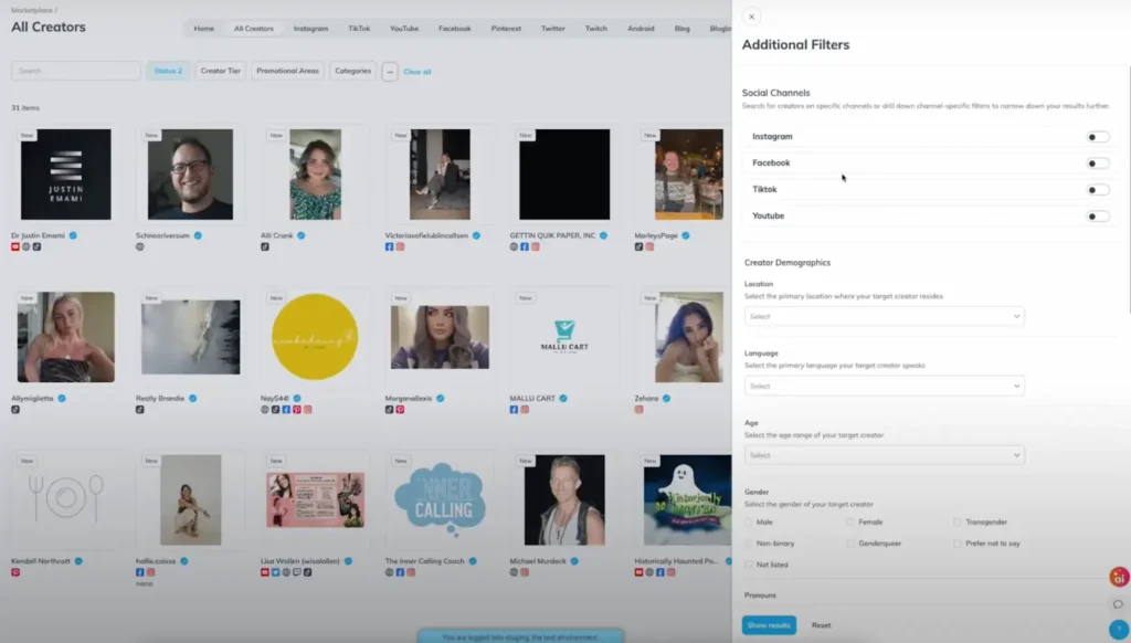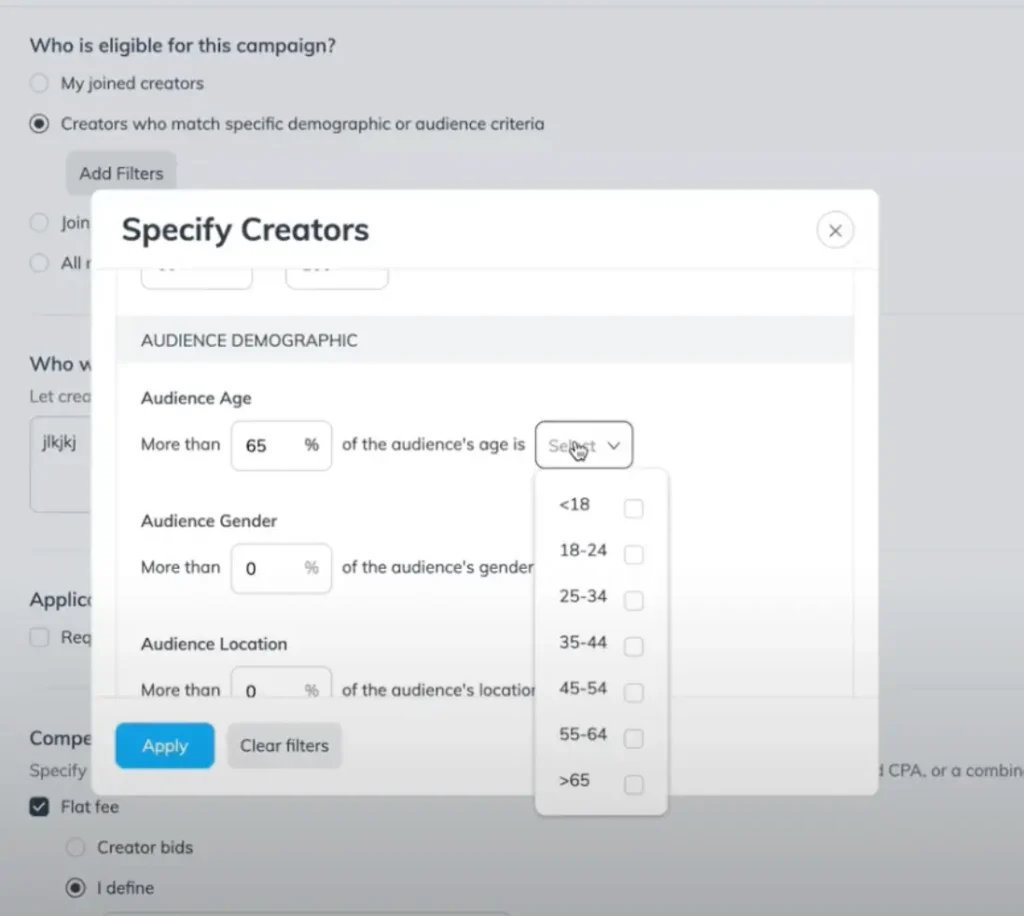 Brands can narrow their search by a creator’s demographic information and/or by a creator’s audience demographic information, ensuring they find the perfect match for their campaigns.
