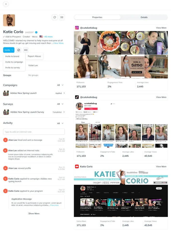 Brands can use the new Creator slideouts to display rich dimensional insights about the creators, content performance (including high-level engagement metrics), connected properties, and content examples.