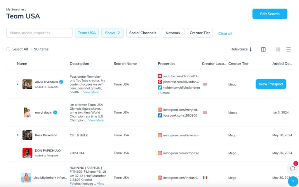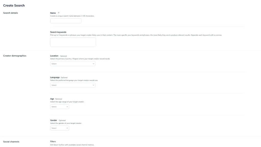 Refine your creator searches with specific criteria using the same advanced filters available in Discover, such as social media platform reach and audience demographics. Use these deep insights to find the perfect match every time and facilitate targeted campaign planning.