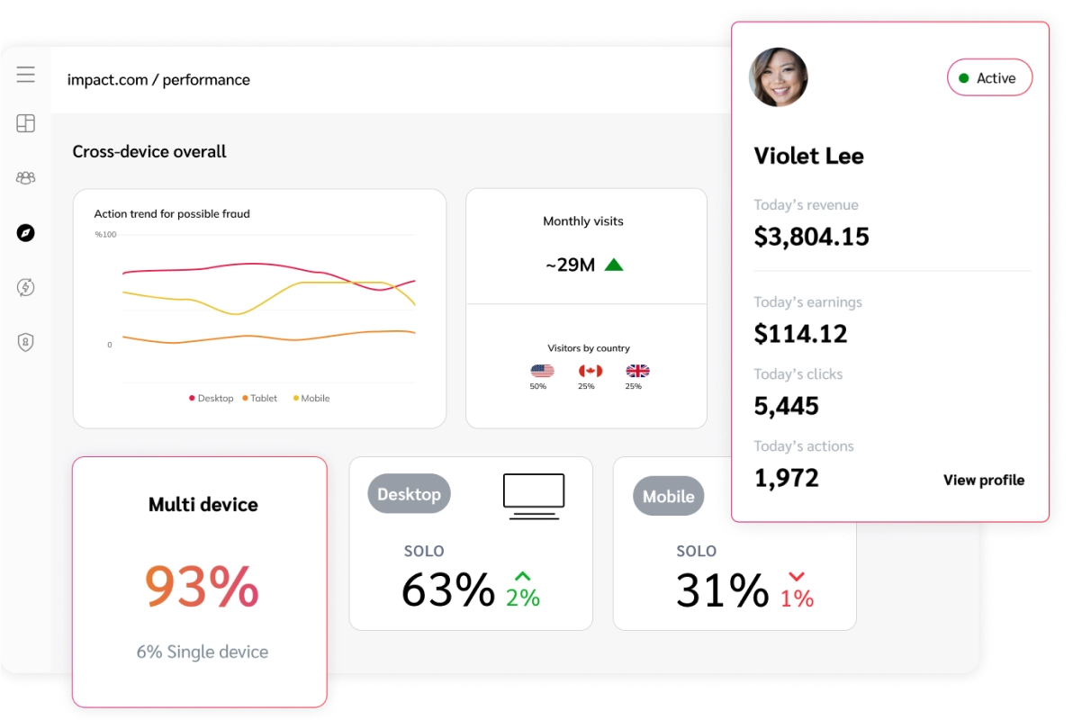 - I nostri algoritmi di machine learning, i data scientist dedicati e le metodologie di rilevamento frodi esaminano e valutano il tuo traffico, aiutandoti a identificare i partner dannosi, in modo da poterli rimuovere dal tuo programma di affiliazione.