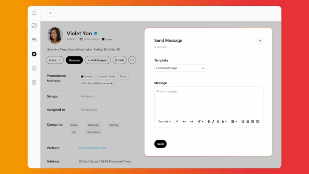 Passa al vaglio gli affiliati in base all’allineamento del pubblico e ai tassi di coinvolgimento. Dai priorità a coloro che interagiscono in modo autentico con i propri follower e hanno un record comprovato di conversioni.