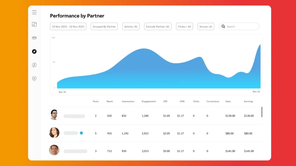 Suddividi i dati sul ROI e sulle conversioni per segmento al fine di identificare i punti di forza e colmare le lacune. I report sulle prestazioni possono aiutarti a valutare quali affiliati, gruppi di pubblico e campagne contribuiscono maggiormente ai tuoi profitti. Ad esempio, FlowerChimp ha utilizzato il report Performance by Partner per individuare i partner più performanti e offrire loro CPA aggiuntivi. Questi insight hanno consentito al team di adattare la strategia e di ottenere un notevole incremento del 55% nell’acquisizione di nuovi clienti.