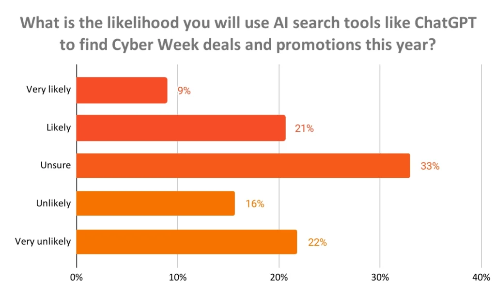 Mentre l’entusiasmo per l’AI guida il mercato azionario, i consumatori sono discordi nel ritenere che gli strumenti di ricerca dell’AI siano il modo per trovare le offerte e le promozioni della Cyber Week.