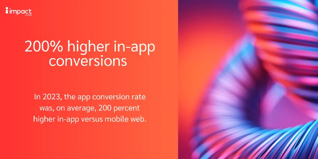 The partnership between Button and discoverimpact.wpenginepowered.com has yielded impressive results, as evidenced by the significant increase in installs, mobile orders, and mobile revenue for merchants across the retail, travel, and on-demand verticals. For example, in 2023, the app conversion rate was, on average, 200 percent higher in-app versus mobile web. This statistic highlights the higher propensity for users to convert within the app environment.