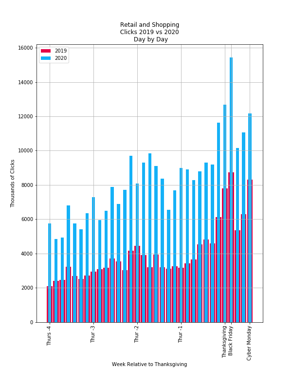 - Overall, clicks were up 108% in the month of November compared to 2019.