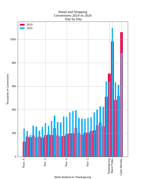 2. Consumers did significantly more buying in the weeks leading up to Black Friday and Cyber Monday 2020 compared to 2019.