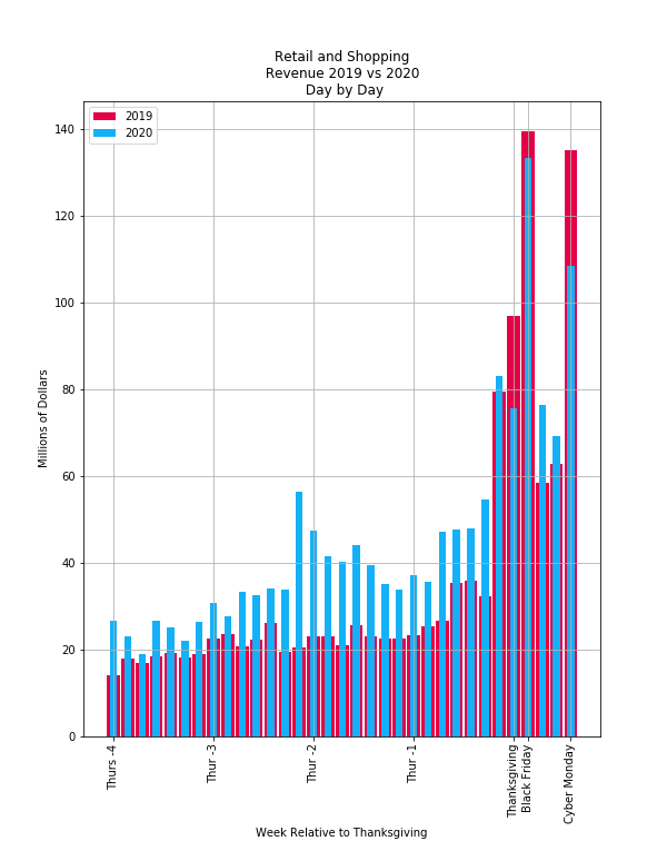 - On Black Friday, revenue was down 4% YoY. Cyber Monday also saw a revenue drop of 20%.