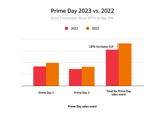 Many ecommerce brands reaped the benefits of more engaged shoppers. As customers spread their Prime Day budget across multiple retailers this year, brands saw gross merchandise value (GMV) increase by 23% YoY.