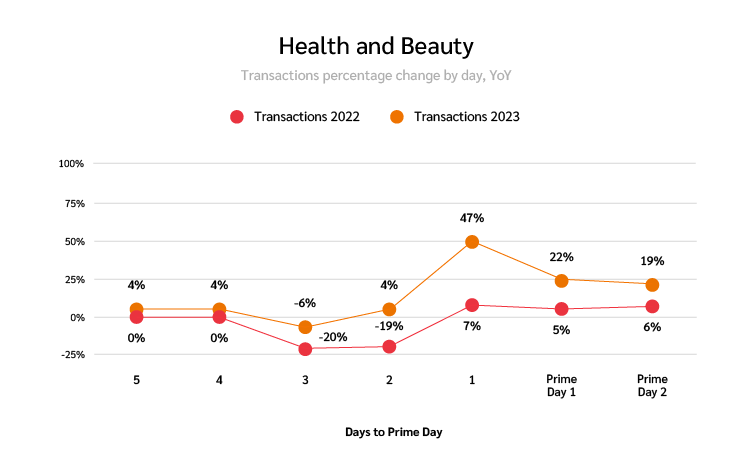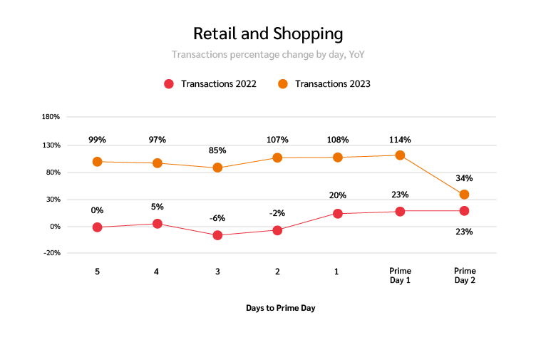 Early deals may have driven customers to complete more transactions before the Prime Day event. This year, transaction volume gained momentum two days before Prime Day—a day earlier than retailers saw a boost in sales last year.