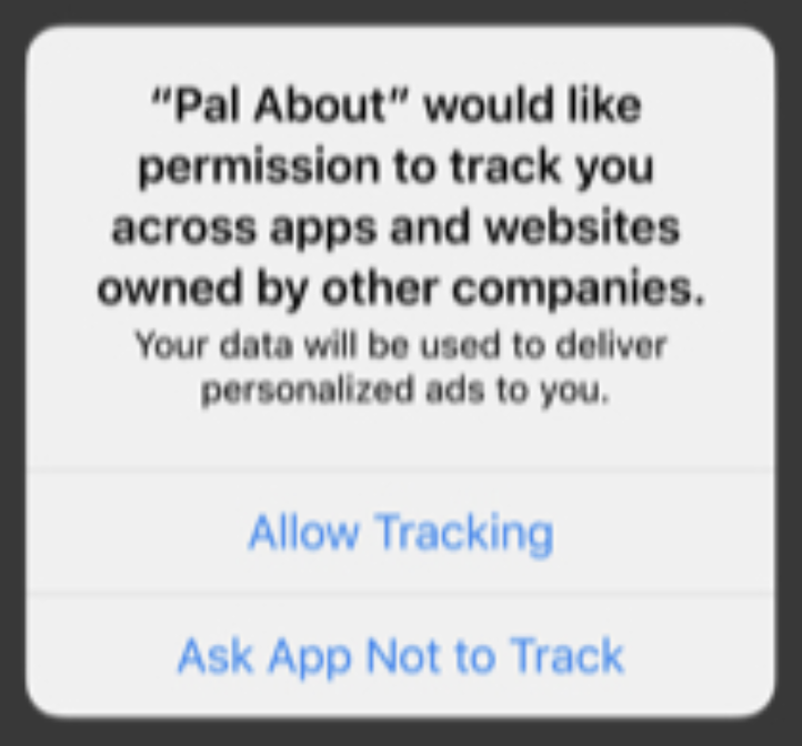 Ask users to opt in to tracking. It’s important to remember that Apple has not actually done away with deterministic and probabilistic matching. It’s simply now gated behind an opt-in dialog called the AppTrackingTransparency framework (ATT). Here’s what that looks like: