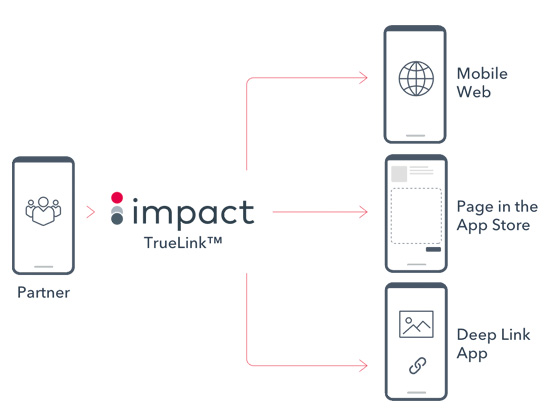 Whether app-to-app, web-to-app, web-to-store-to-app, or app-to-store-to-app, all scenarios can ultimately direct users to a specific place in your app and track your partner referrals seamlessly—Impact does it with our innovative TrueLinkTM, our no-fuss, API-based deep link tool. With the right technology, users will have an optimal experience, regardless of the device they’re using or if they have your app installed. You can capture the higher conversion rates, AOVs, and greater purchase frequency of the in-app experience while optimizing the value of your partnerships.