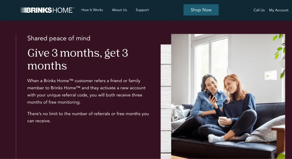 Brinks Home offers a dedicated explainer page for their customer referral program.