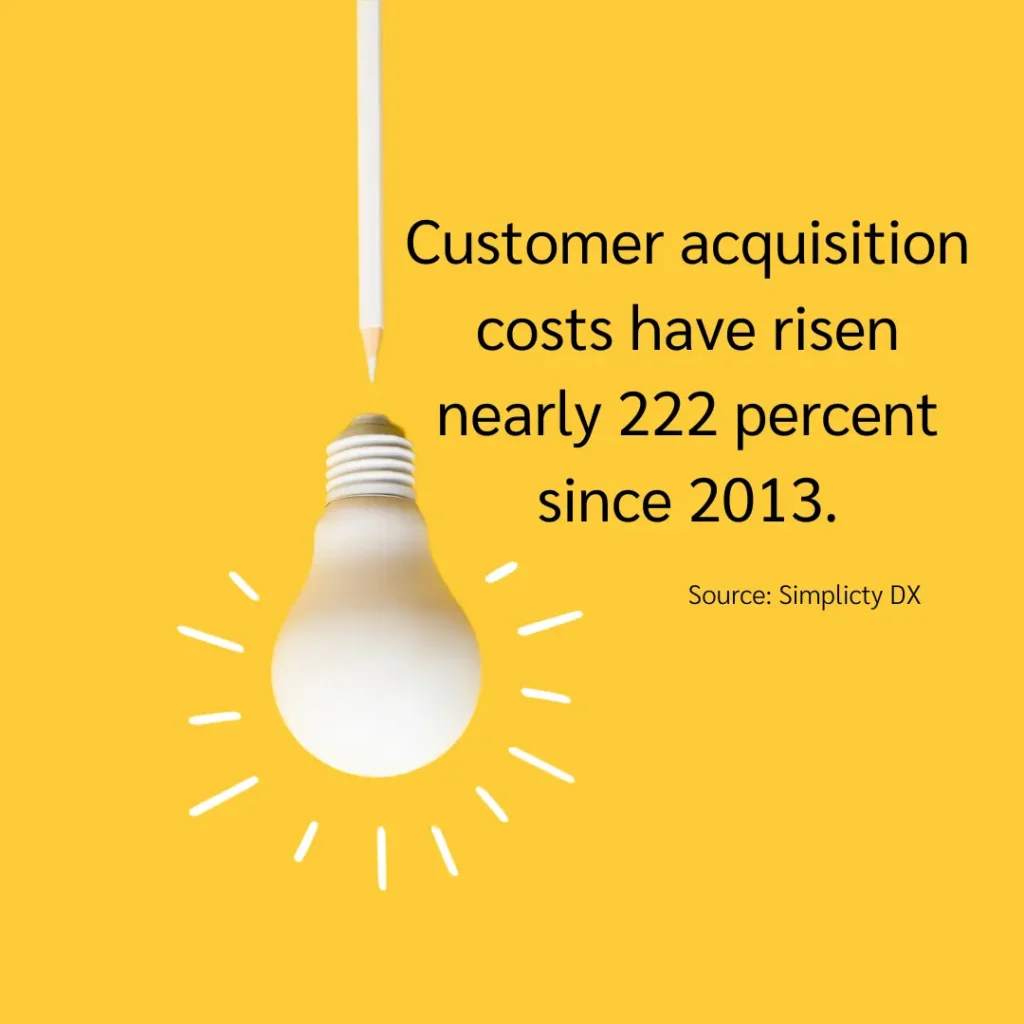 According to research by Simplicity DX, customer acquisition costs have risen nearly 222 percent since 2013, and it’s still climbing.