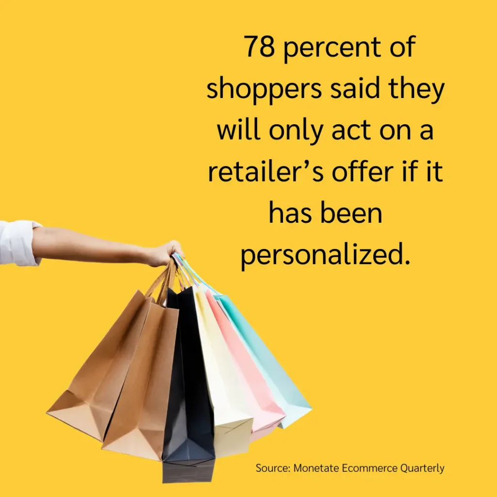 A reported 78 percent of shoppers said they will only act on a retailer’s offer if it has been personalized to their previous actions with the brand.