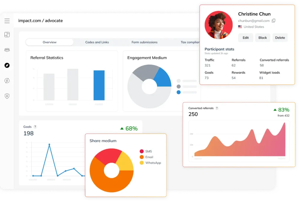 Real-time monitoring: Referral platforms offer dashboards that update in real time. You can track overall program performance such as: