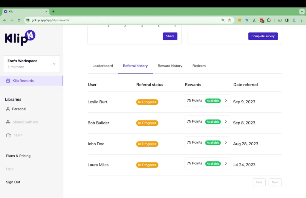 Customers want a frictionless experience. For instance, if you have a web or mobile app, make it easy to log in with a single sign-on or a click of a button. The referring person also wants to know the status of their referrals— a dashboard makes this a breeze. Knowing the status of referrals gives customers confidence in the program and reduces support tickets.