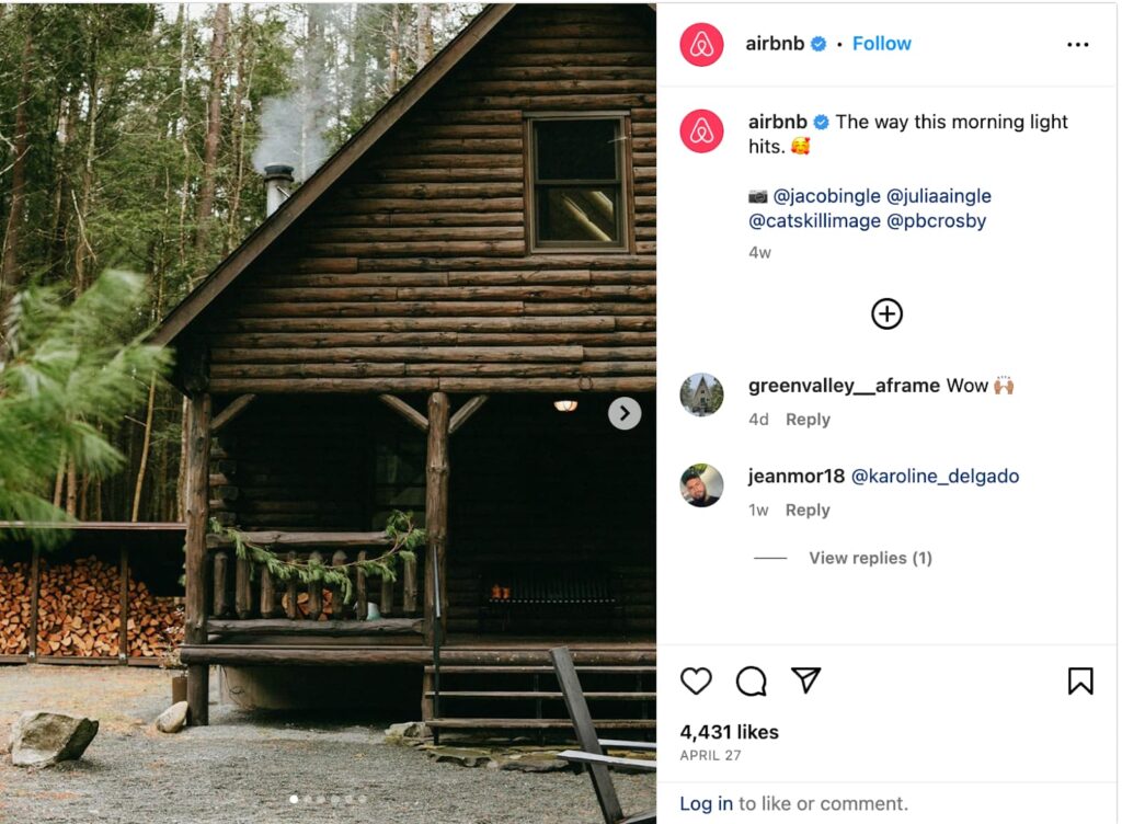 Se da un lato il brand condivide dei contenuti UGC con i suoi clienti, dall’altro collabora con dei fotografi per creare immagini autentiche che incoraggino gli spettatori a prenotare un soggiorno.
